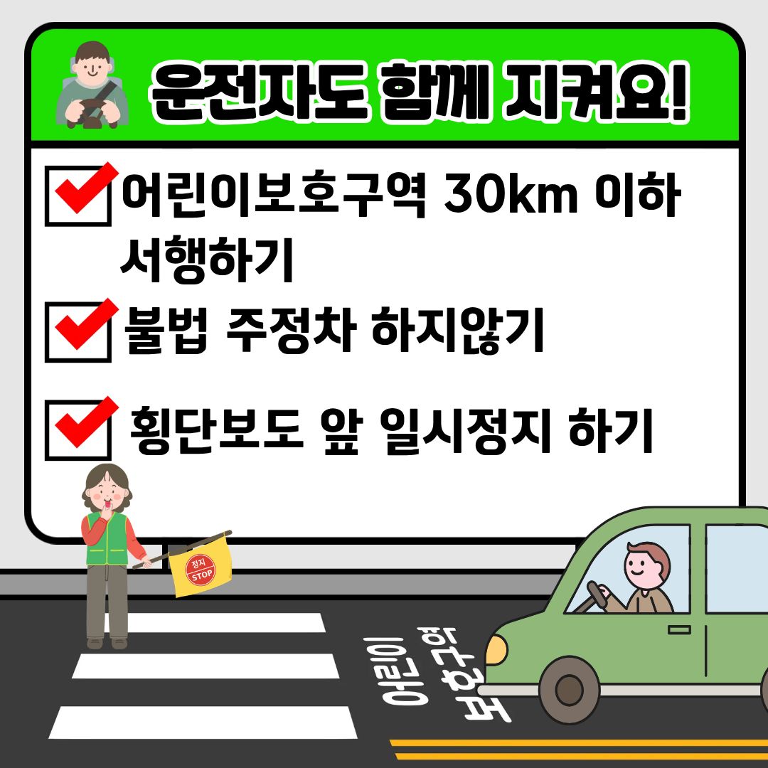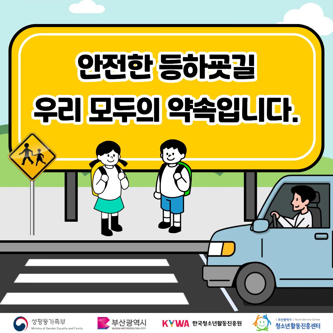 어린이보호구역 30km 이하 서행 안전은 우리 모두의 약속입니다.문의)051-852-3461